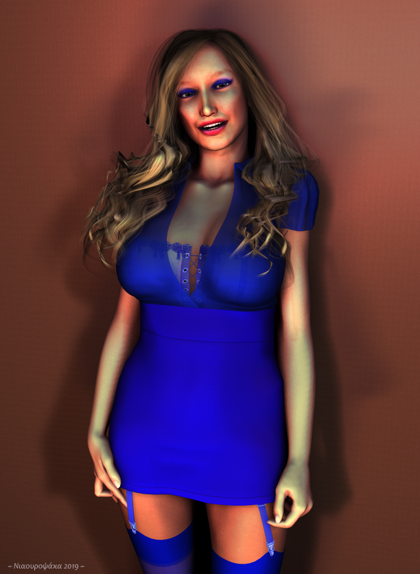 I was surprised to find I’d never posted Iris’s ‘Blue Threat’ outfit. I’d designed it last fall, even given it a nickname and…oh, I had to tweak it some more. I see why I’d not published any shots of it before. Added some magnets to the dress, & it seems OK now.