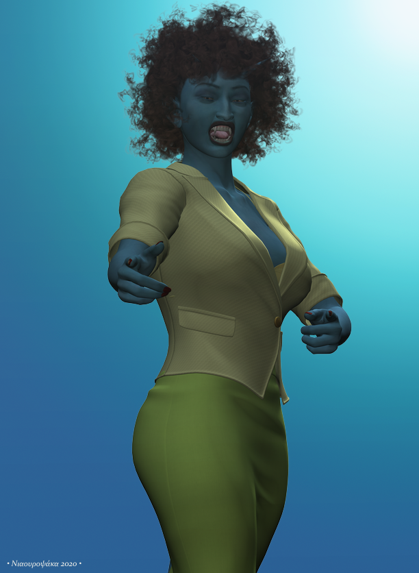 This isn’t menacing enough. She should have some hapless human in one hand. But I didn’t even do 3D work for four weeks, so I’m just gonna publish what I have.